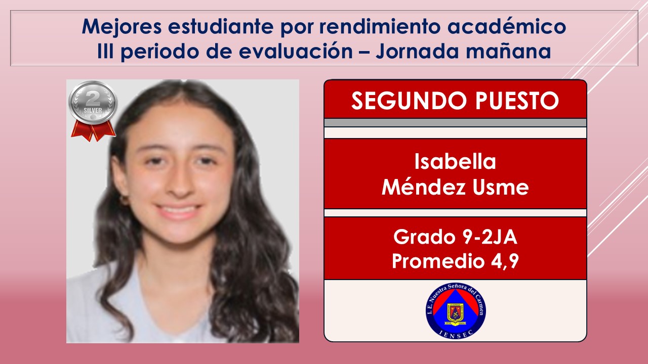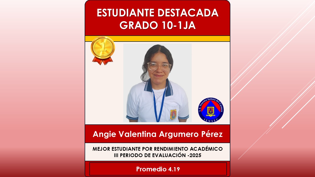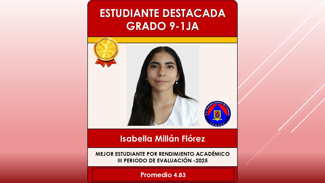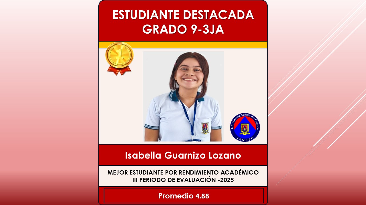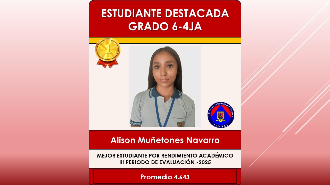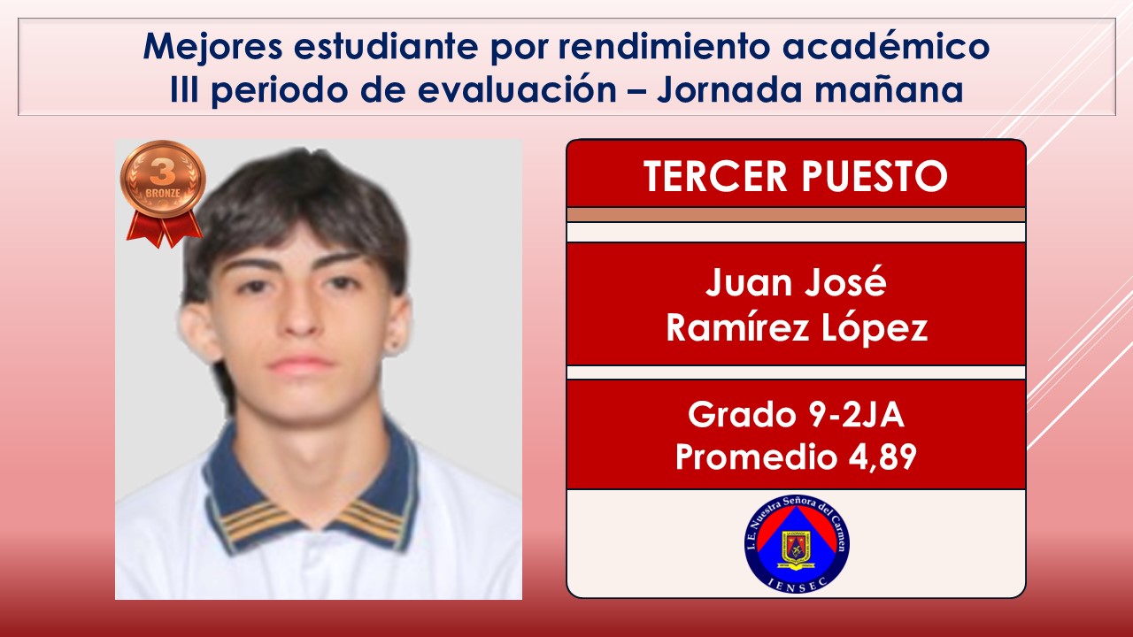 Por: Coordinación JA |La Institución Educativa se complace en exaltar a los mejores estudiantes de la jornada de la mañana, quienes, gracias a su esfuerzo, compromiso y dedicación, han alcanzado un destacado rendimiento académico. Su disciplina y constancia son ejemplo para toda la comunidad educativa, demostrando que con perseverancia y responsabilidad se logran grandes resultados. ¡Felicitaciones por este merecido reconocimiento!